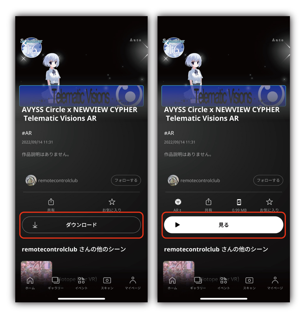 体験したいシーンを選択したら、ダウンロードボタンをクリック、