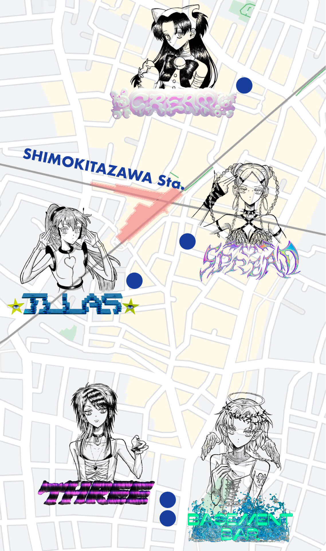 SPREAD、THREE、CREAM、BASEMENTBAR、ILLAS、下北沢に点在する5つの会場を使用して行われるAVYSS初のサーキットイベント「AVYSS Circle」とXRアートコレクティブNEWVIEW CYPHERがコラボレーション。