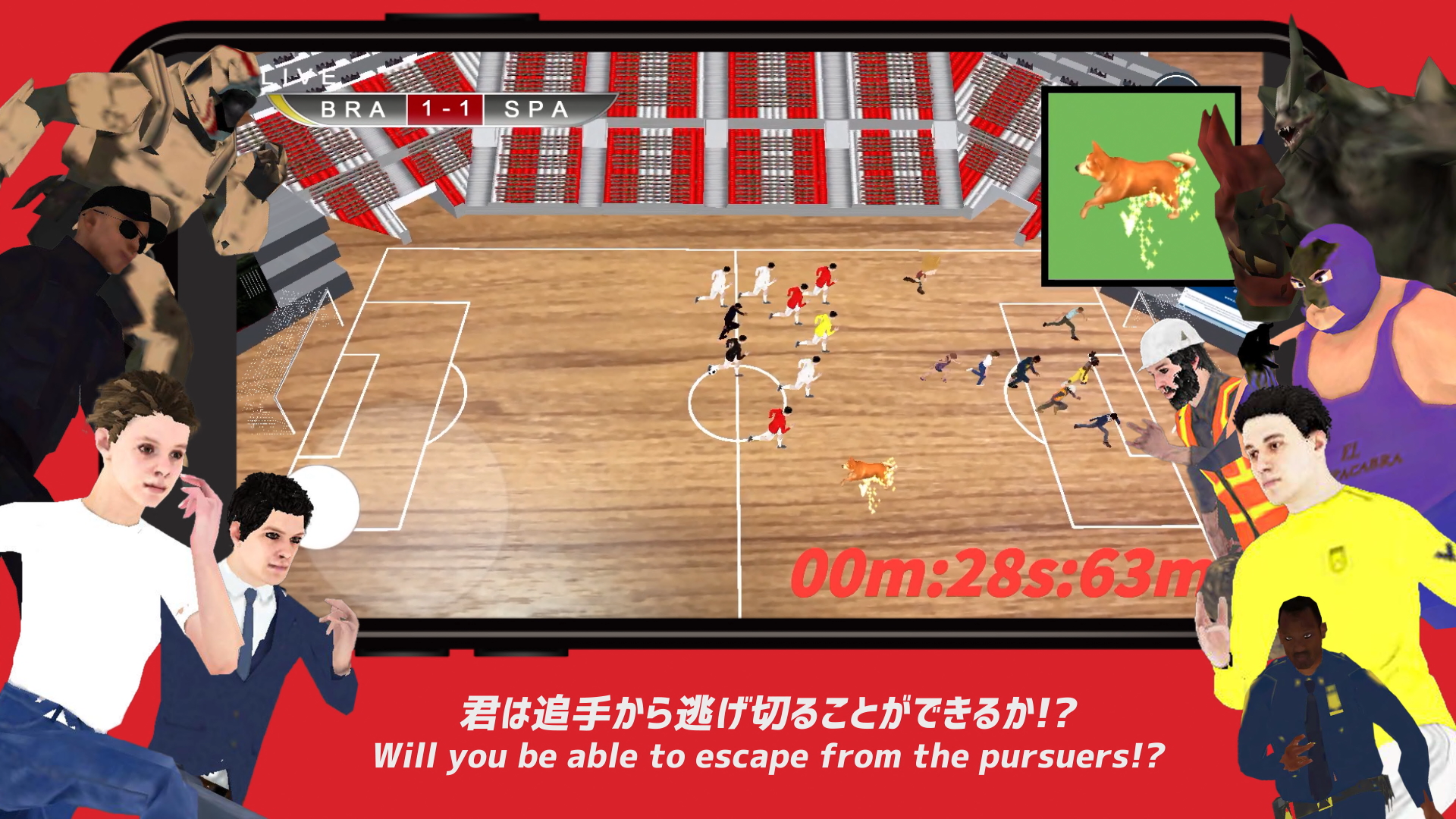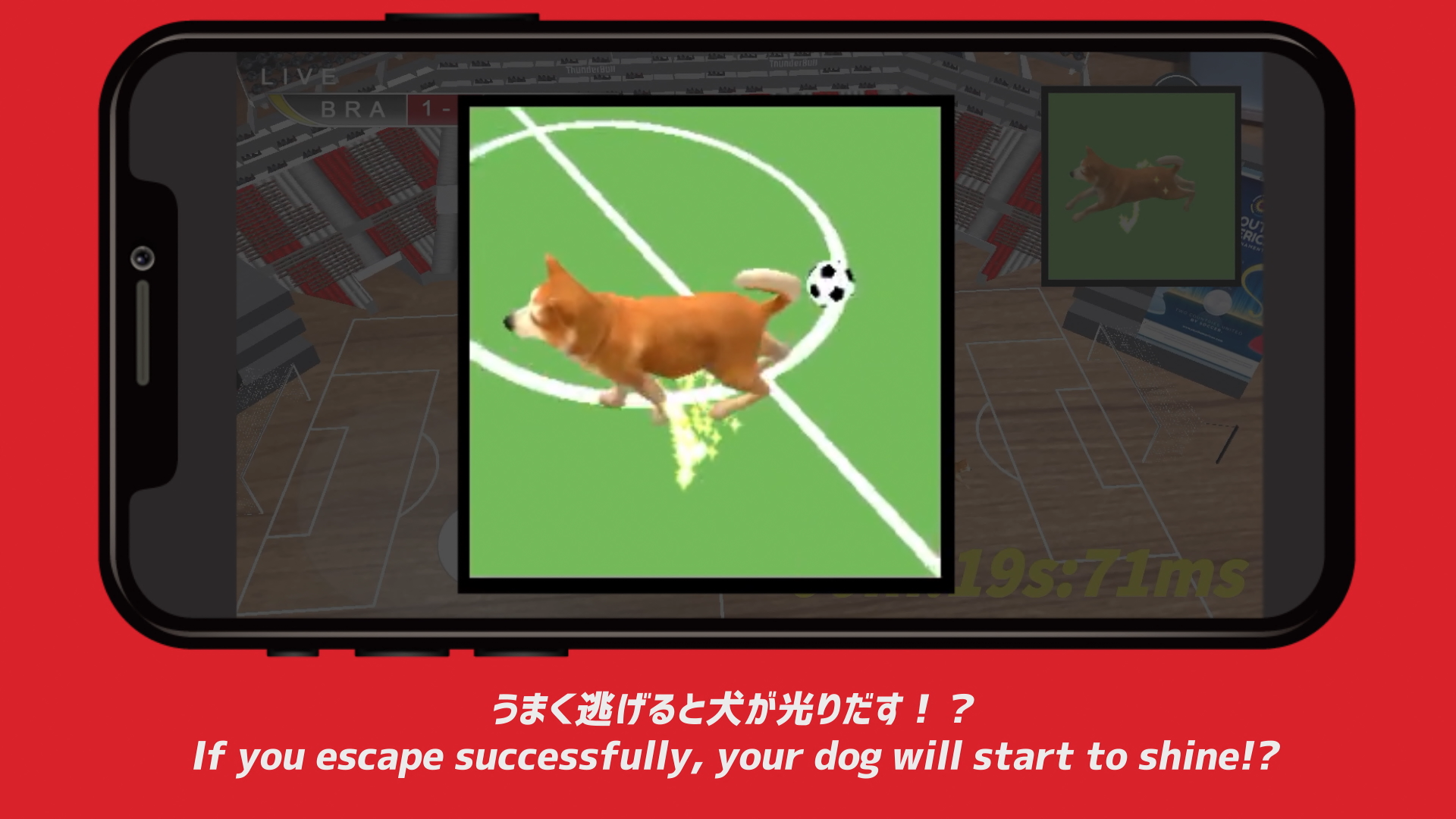 Even if you haven't seen the game, you may have seen it on the news or on YouTube. In this AR, the experiencer becomes a dog and runs around a soccer stadium that appears on a desk.