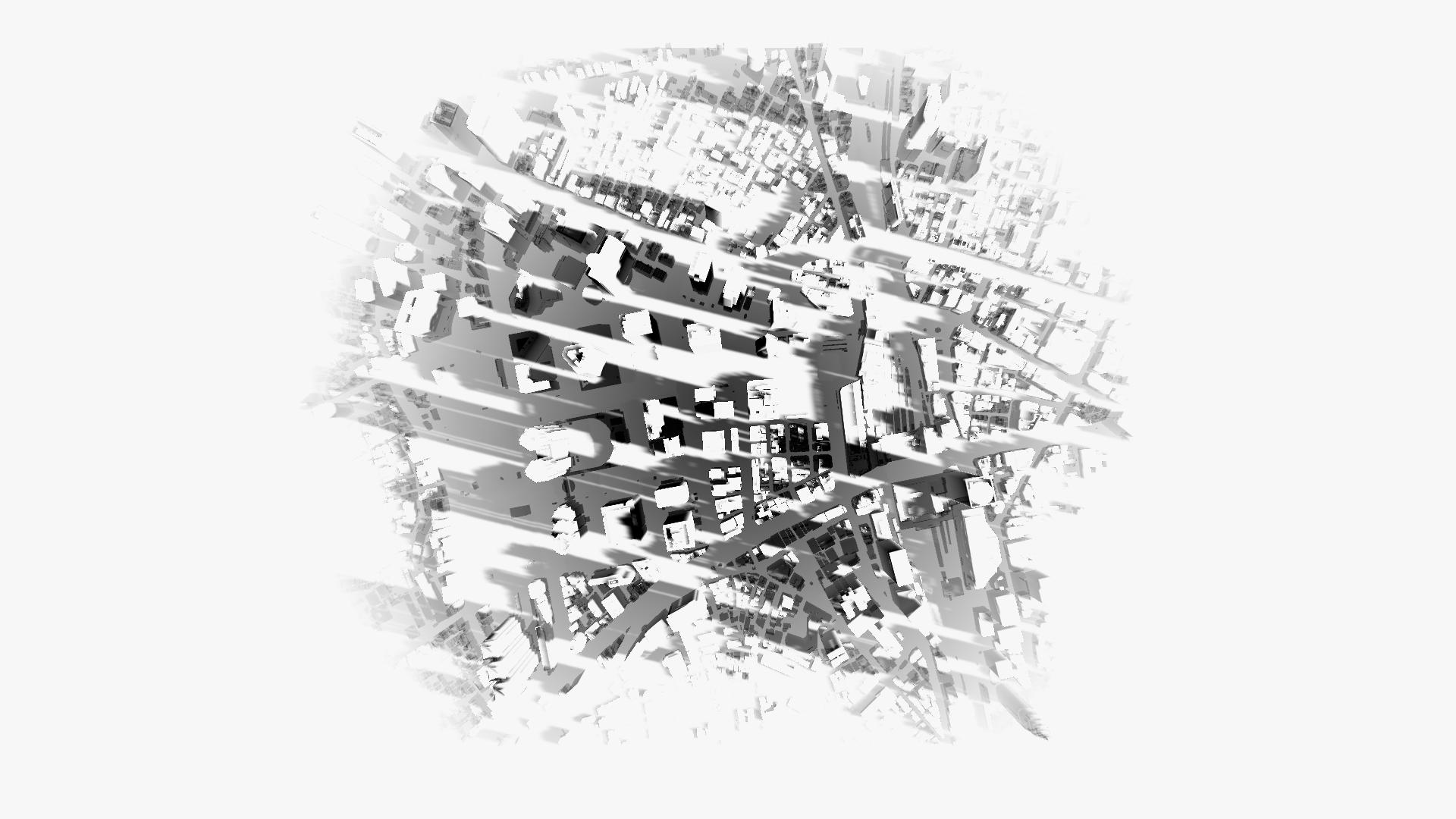 "影響都 (City Echoing Shadows)” is an AR work that lets the viewer walk among the shadows of a city reduced to the scale of a human body. The AR shadows are overlapped with the current urban landscape, swaying under the sun which rotates in one-minute cycles. Also, as one approaches the shadows, the environmental sounds of the place are echoed. The more the shadow overlaps the point where the viewer is, the more the environmental sounds become blurred, luring the viewer to a place far away from the present city, while still being in the present city. By immersing oneself in the echoing shadows while overlooking them, one is reminded of memories of a past city that no longer has a form, or of illusions about a future city that does not yet have a form.