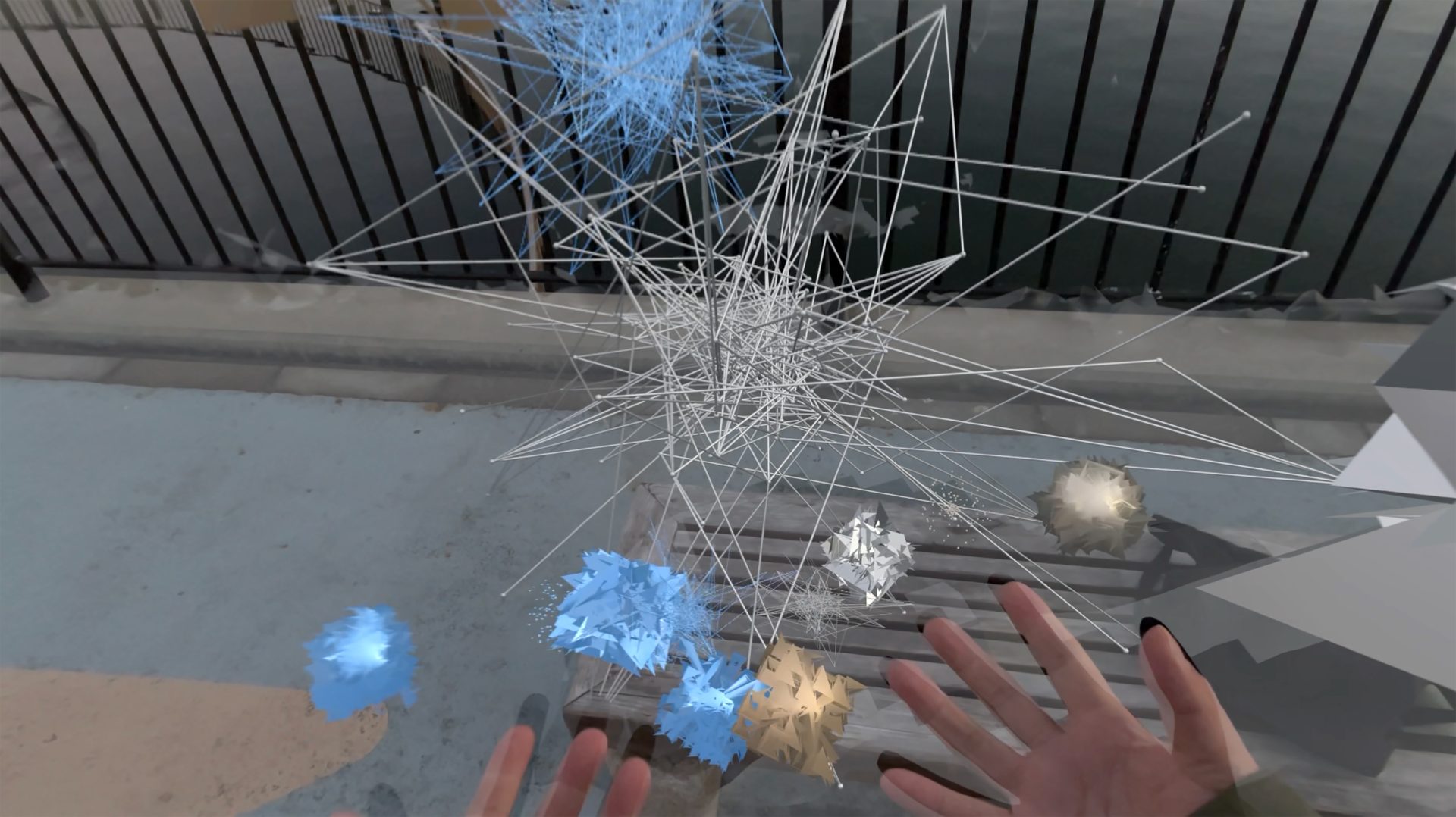 This project redefines scientific progress as “a competitive process in which humanity and AI continually evolve toward as-yet-unreached intellectual frontiers,” and aims to capture this dynamic quantitatively and visually within the realm of art and science. In this undertaking, the latest real-world scientific news is collected and analyzed across multiple disciplines, focusing on the complementary and competitive relationship between human intelligence and machine intelligence (AI). The result is a work that extracts only the visualizations from reports (web articles), making them perceptible through Apple Vision Pro.