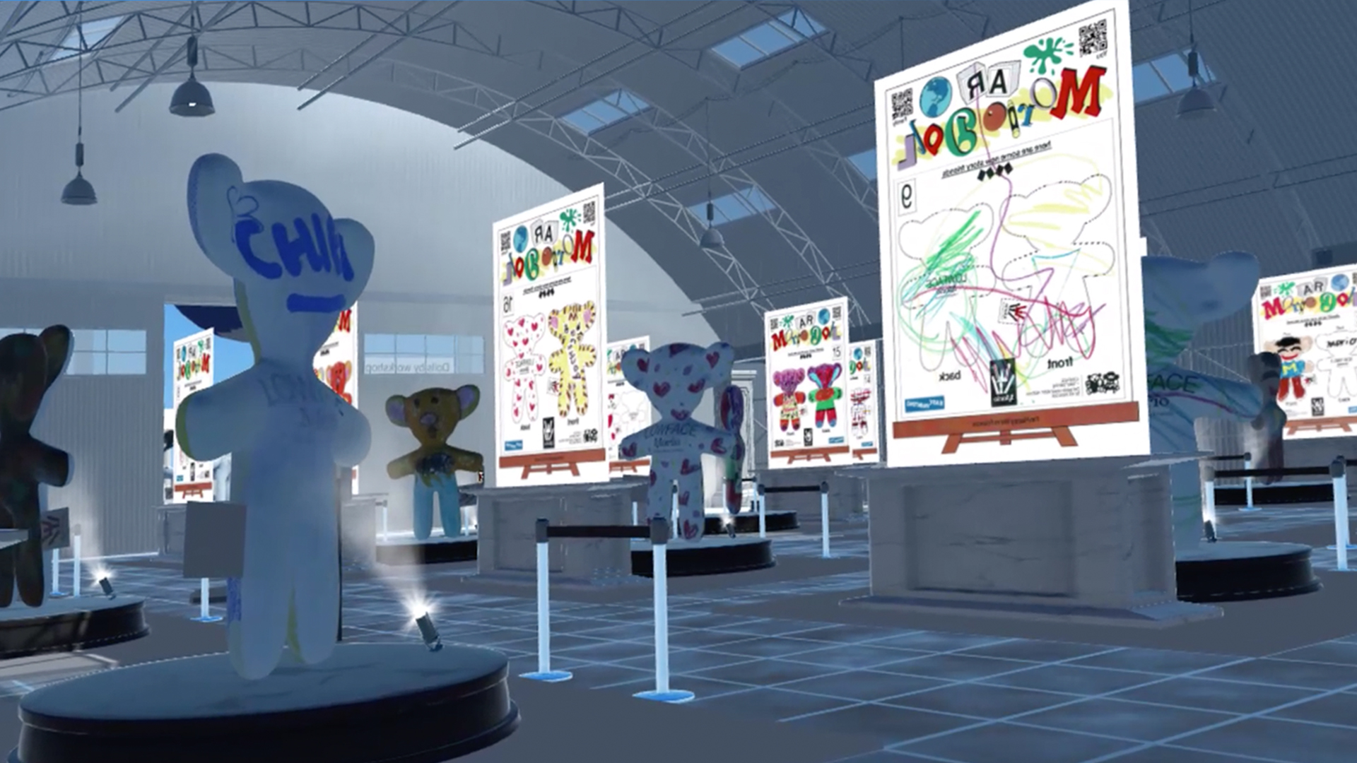 The city of Morio dolls was depicted using the VR space as a city where both physical stuffed animals and dolls "doodled" on by customers during the workshop could coexist.