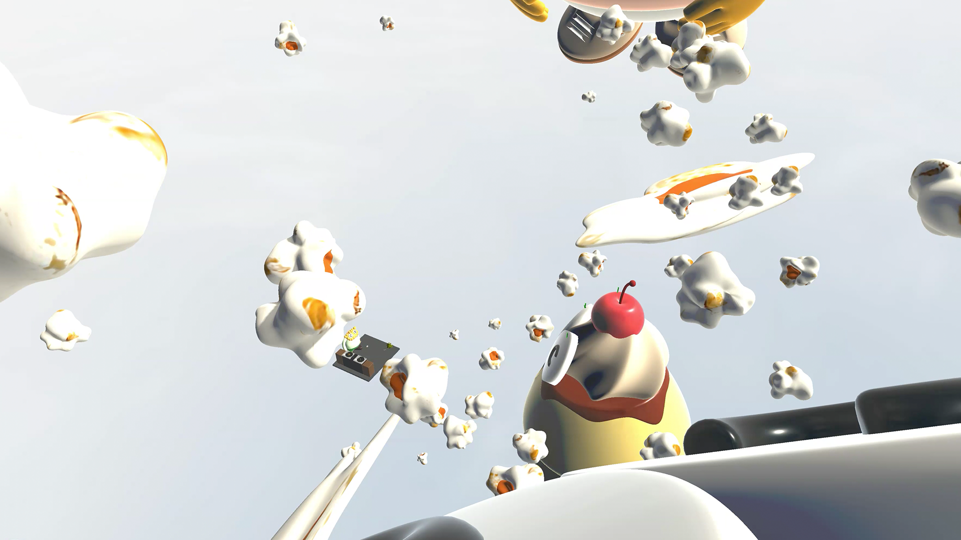 In this world, you can only move by climbing up and sliding down a giant popcorn floating in the sky.