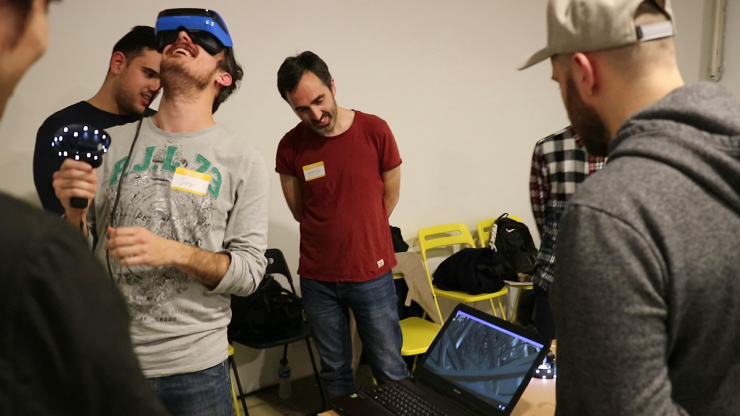 グローバルツアー、1カ国目は、スペイン・バルセロナです。会場となるFabCafeバルセロナがあるのは、クリエイターやエンジニアが集まる”MOB”というコワーキングスペース。デジタルエージェンシーも入居していることから、既にVRコンテンツを手がけているクリエイターやエンジニアなどが集まってくれました。