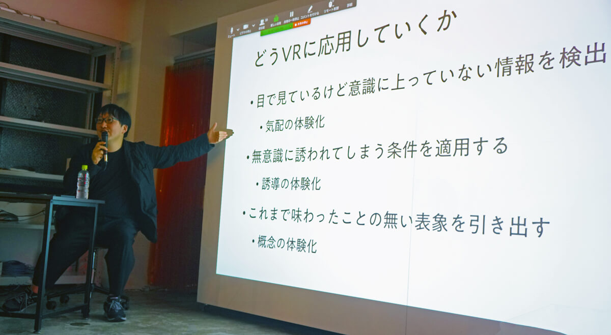 最後に、菅さんは、受講生のVR作品づくりのインスピレーションとして、知覚を応用した無意識の領域をデザインすることと締めくくりました。 これには受講生一同、感銘を受けた様子でした。