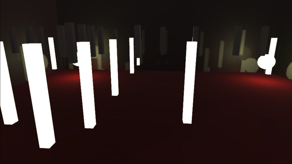 I have produced a bit of a brand new experience with a focus on 'zero gravity' using a VR space, which has a high degree of freedom with no size or direction restraints. At first, you are in a room, around you are black and white bars lined up like piano keys. Like how the sounds of nature are locked up in a piano, you too are locked up. After a short period the VR space breaks, and you are thrown into the sky with the piano. Every time the keys are hit they produce a sound. In this zero gravity space you have been thrown into, you freely float about, collide with objects, and make different sound patterns each time you enter. Lastly, just the objects around you regain their gravity, and only you are left in the zero gravity space. While listening to the ring of noises, you drift in this space with gravity slightly different to what you normally experience. I created this project while aiming to create a continuous nice feeling that you will never get tired of, like the kind experienced when lying down and looking up at the sky.