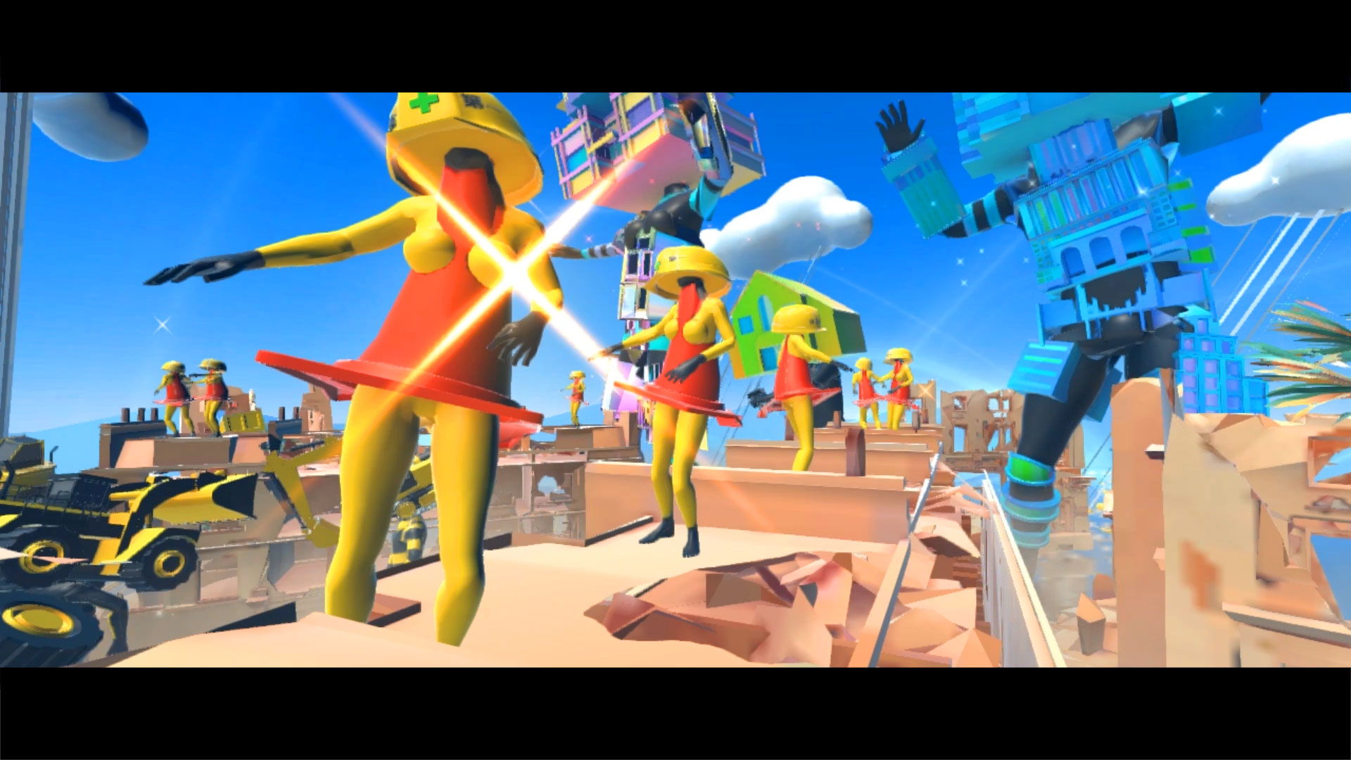Construction machines perform a break dance in a virtual island. What will it be to create, to destroy, to live? What do you think?