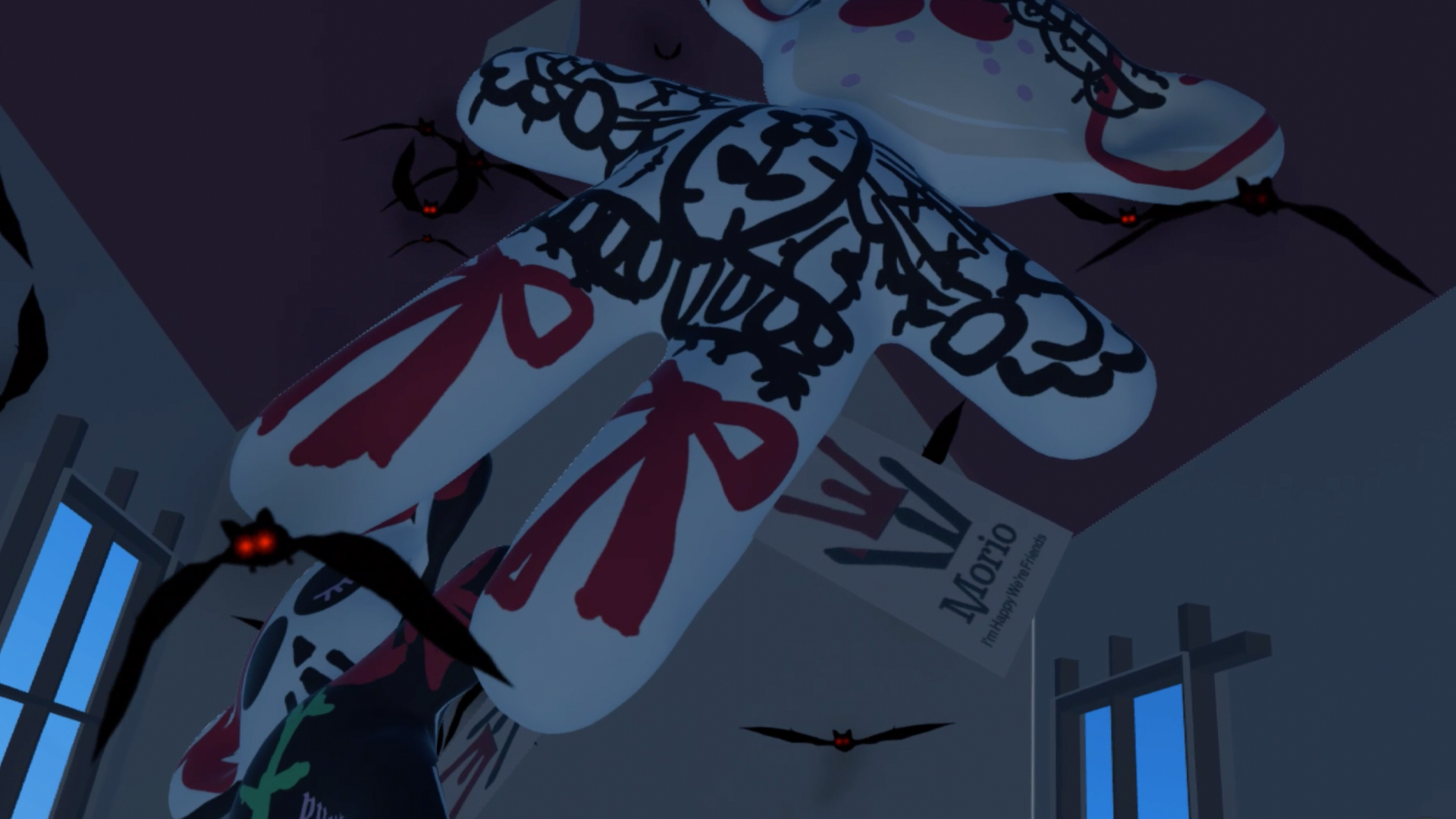 利用VR虛擬實境空間,將截至目前為止的網印實體娃娃作品與互動研討會中由參加者們「塗鴉」而產生的娃娃,在MORIO娃娃城裡共存出現。