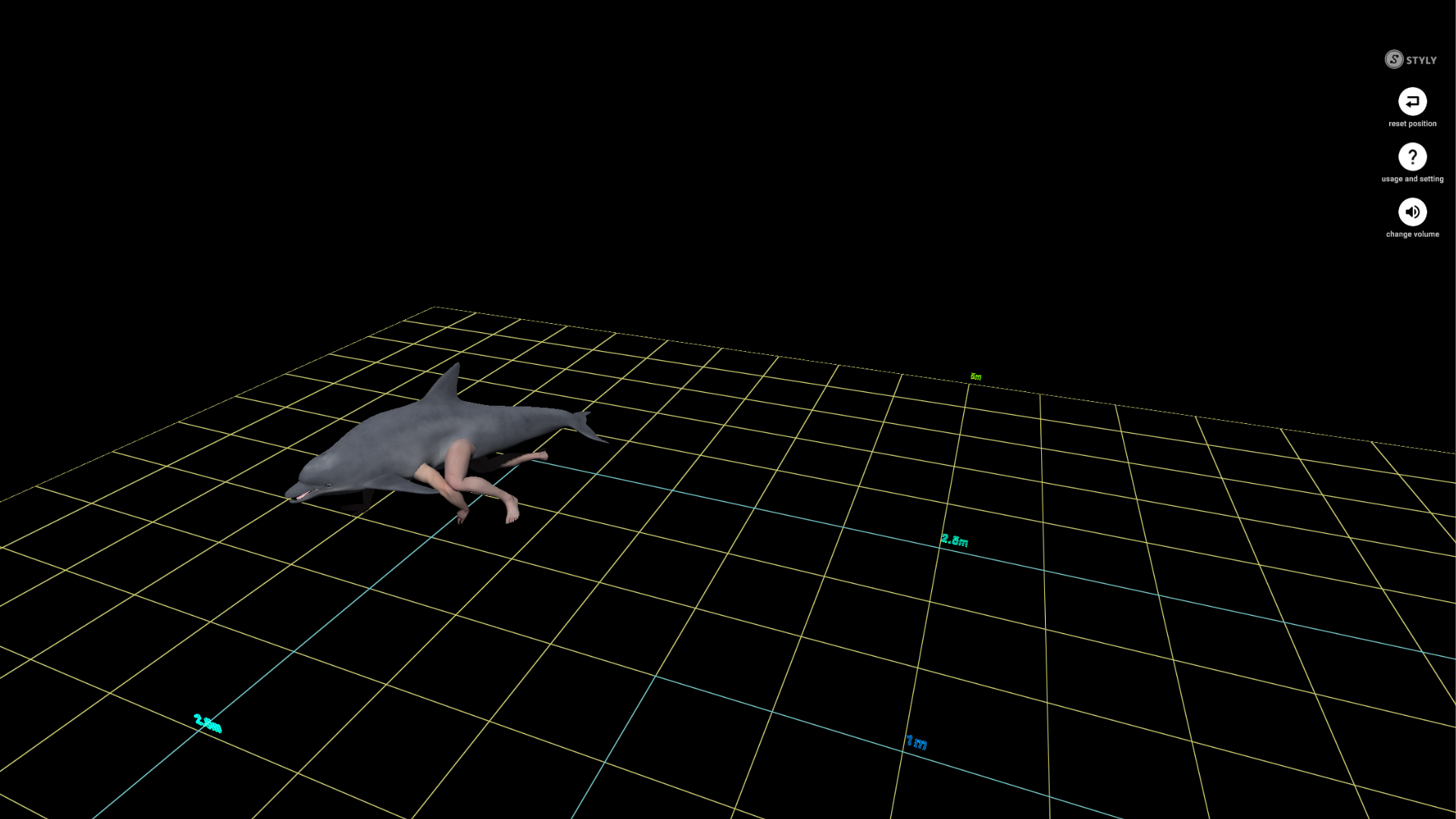 人類和海豚雜交的生物繞圈跑。你可以拿著相機拍攝你的朋友追著牠跑,或是你自己追著牠跑的影片。