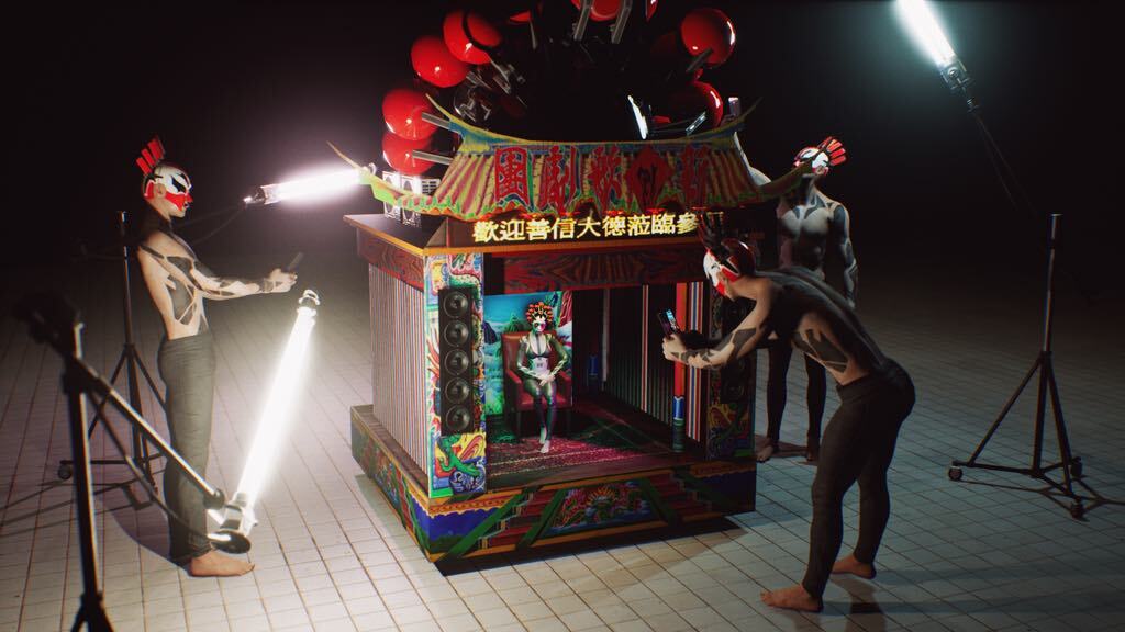 This AR work is about people's adaptability to rapidly changing values. Using the form of the traditional Taiwanese Opera, this work is about the idea when the traditional values collapse as a natural phenomenon, how can we human try to adapt this in an absurd, unbalanced and kind of chaotic way. The virtual opera truck stands around 40-50cm height. When viewers try to watch the opera, they got to bend over while they follow the moving truck.