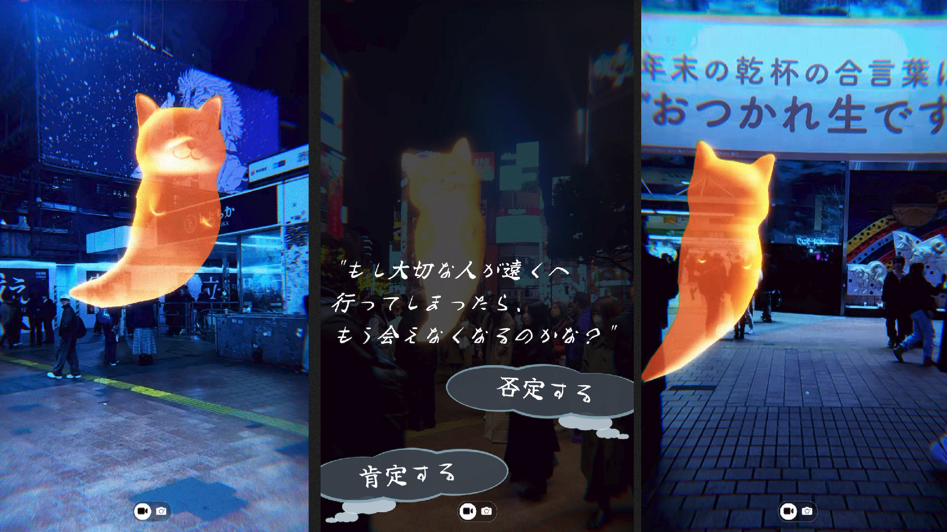 モニター越しでも仮想空間でもなく、現実を拡張した空間で、普通は会えない人や生き物とコミュニケーションが取れるARならではの作品を試みました。さらに、物語に地域性を絡めることで、場所とテーマを変えればさまざまなバリエーションの体験が可能となる、柔軟なひな型を持つ作品としても仕上げています。