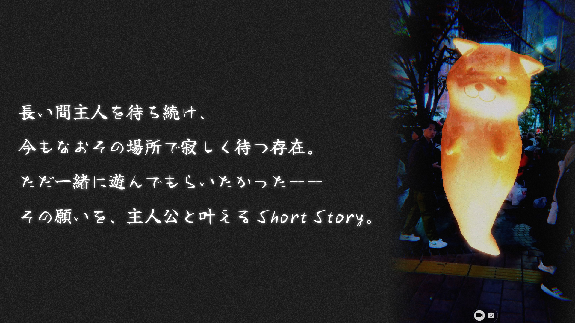 サイトスペシフィックは、イマーシヴと同じく、20年代のマジックワードとして世に機能している。そのような場所の持つ唯一性を考えると、渋谷におけるハチ公前は、歴史と伝統を持った最も普遍的な公共空間であると捉えることができよう。そんなパブリックな「環境に宿る物語」を「体験できる小説」に置き換えたのがこの作品である。渋谷スクランブル交差点奥でのハチ公の霊との対話は拡張現実を超え、人の心の中に形を変えて潜入し、インタラクティヴな"口寄せ”へと変転する。「Immersive Nove」によって、イタコや巫女が霊媒となることと同様、都市というメディアに寄り添う、身体というメタ・メディアの拡張を入れ子体験することになるだろう。